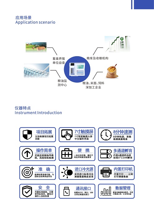 為了保障食品安全,日常監(jiān)管檢測食物中黃曲霉霉毒素是否超標這一工作尤為重要和必要。深芬儀器CSY-YG701黃曲霉毒素快速測定儀通過檢測線熒光定量卡中的熒光強弱程度,定量分析待檢樣品中黃曲霉毒素B1殘留含量;能夠快速定量檢測花生、牛奶、玉米、小麥、大米、大麥、小米和燕麥等谷物、飼料、面粉、食用油、調味品中黃曲霉毒素B1,適用于糧庫收糧檢測、糧油監(jiān)測中心、糧油飼料生產加工、食品加工貿易、畜禽養(yǎng)殖戶自查、工商質監(jiān)部門用于市場快速篩查等。